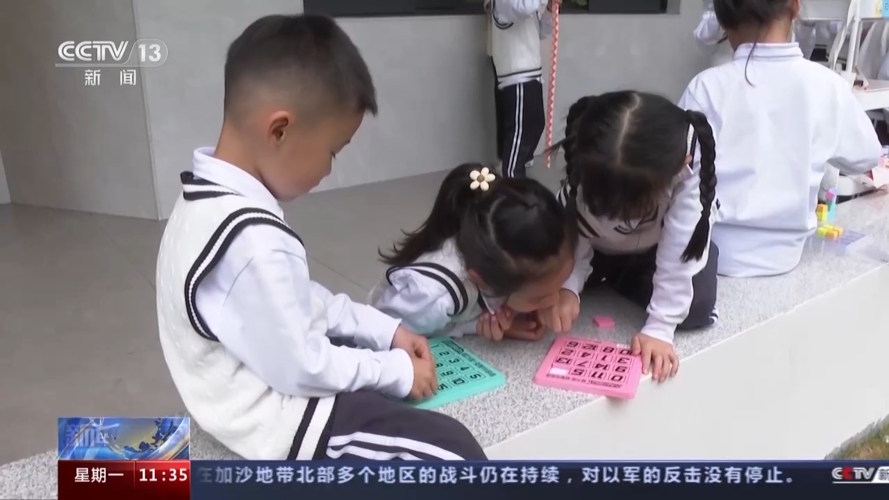 记者看到,因为面积局促,学校对所有活动空间都进行了精心规划改造。在教室里,每个班都设置了像这样的游戏角,利用飞行棋、自制古诗卡等三五分钟就能开展起来的益智类小游戏,让同学们在有限空间内放松心情;学校还专门对这个阅读空间进行了改造,增设了跳绳、乒乓球、钢琴和国际象棋等室内运动和游戏区域,在户外,则增设了器械区和攀岩墙。