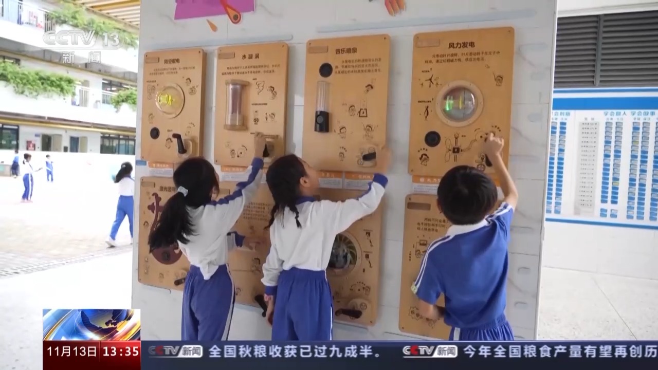 如果同学们课间不想运动,学校还在每层布置了科学互动角,“发电轮”“灯光隧道”“音乐喷泉”“水漩涡”等十几个交互式科技项目也在课间对同学们开放。