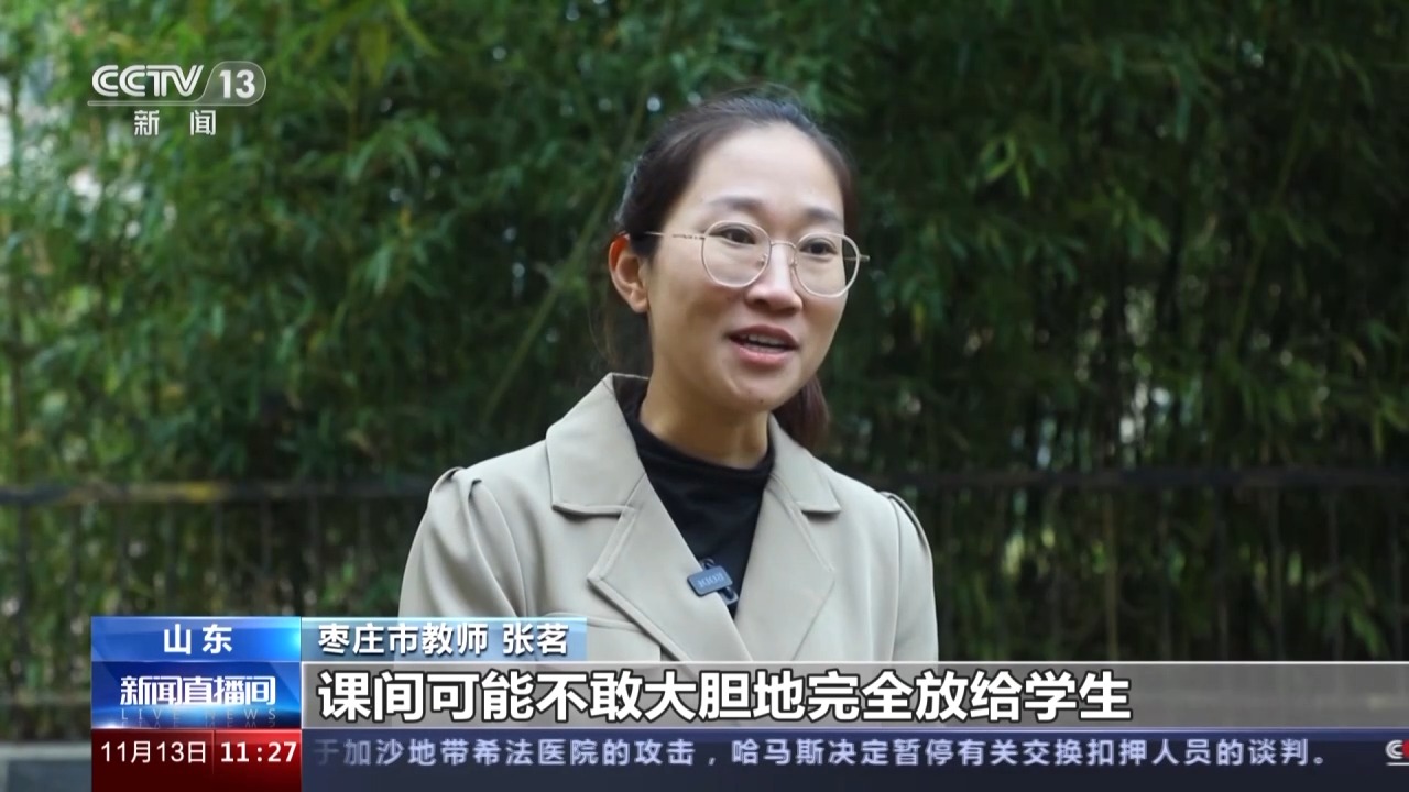 山东枣庄市教师 张茗:课间可能不敢大胆地完全放给学生,如果出现安全问题,对孩子来说是一种伤害。处理安全纠纷问题的话,相对分散我们的教育教学精力,也给学校产生一些不好的影响。最重要的一个部分是沟通,社会认同了,家长认可了,一定是我们开展各项工作最坚实的后盾。