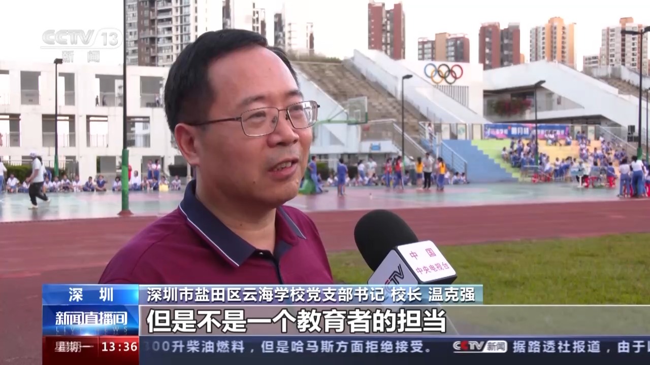 深圳市盐田区云海学校党支部书记、校长 温克强:怕出事情,怕担责任,就把学生课间圈养,确实这个是省时省力,但是不是一个教育者的担当,也不是一个学校的担当。应该尊重教育规律,要为孩子们的健康着想。希望我们的孩子在这边读9年,他会科学地锻炼,有这种锻炼的好习惯,热爱体育,热爱生活,这就是我们追求的方向和育人目标。