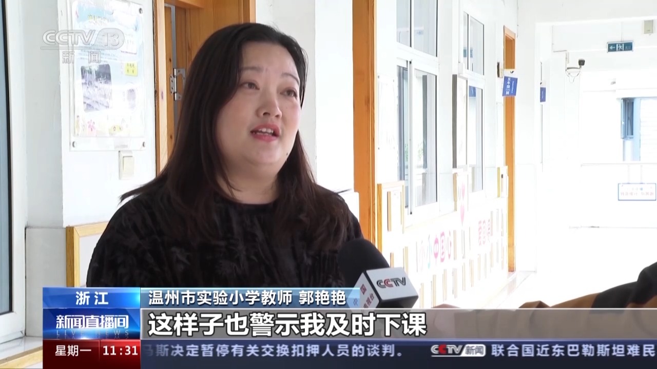 温州市实验小学教师 郭艳艳:这个铃声是挺大的,我要是继续上课的话,孩子们也不能够很清楚地听到我的声音,这样也警示我及时下课。