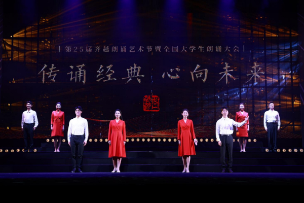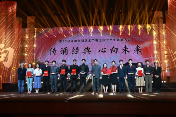 新华网北京11月19日电(记者 危颖)以“传诵经典·心向未来”为主题的第25届齐越朗诵艺术节暨全国大学生朗诵大会于11月18日晚在中国传媒大学圆满落下帷幕。本届大会由国家语言文字推广基地(中国传媒大学)、中国高等院校影视学会主办,中国传媒大学播音主持艺术学院、中国高等院校影视学会播音主持专业委员会承办。