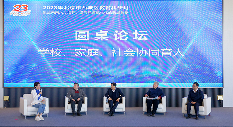 新华网北京11月20日电 近日,由北京市西城区教育委员会、西城区教育学会主办,西城区教育科学研究院承办的“2023年北京市西城区教育科研月”启动。在开幕式现场的圆桌论坛环节,北京小学校长李明新与多位嘉宾围绕“学校家庭社会协同育人”展开讨论。李明新分享了自己对“何为面向未来的人才”的思考,以及对学校在育人中定位的思考。