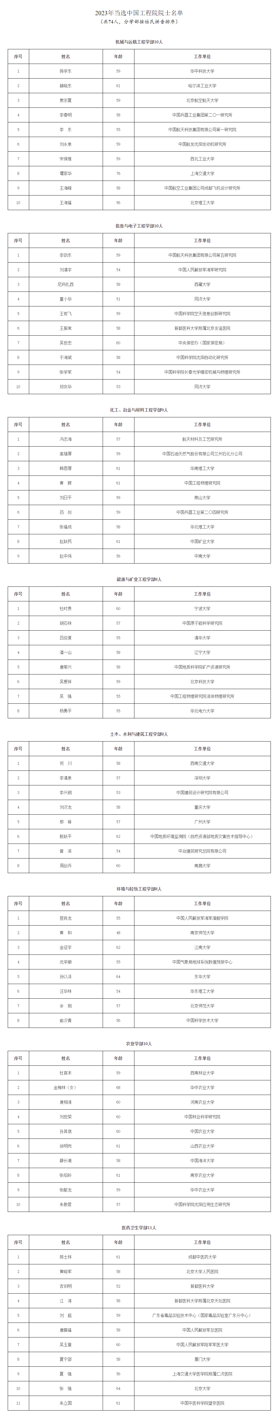 关于公布中国工程院2023年院士增选当选院士名单的公告