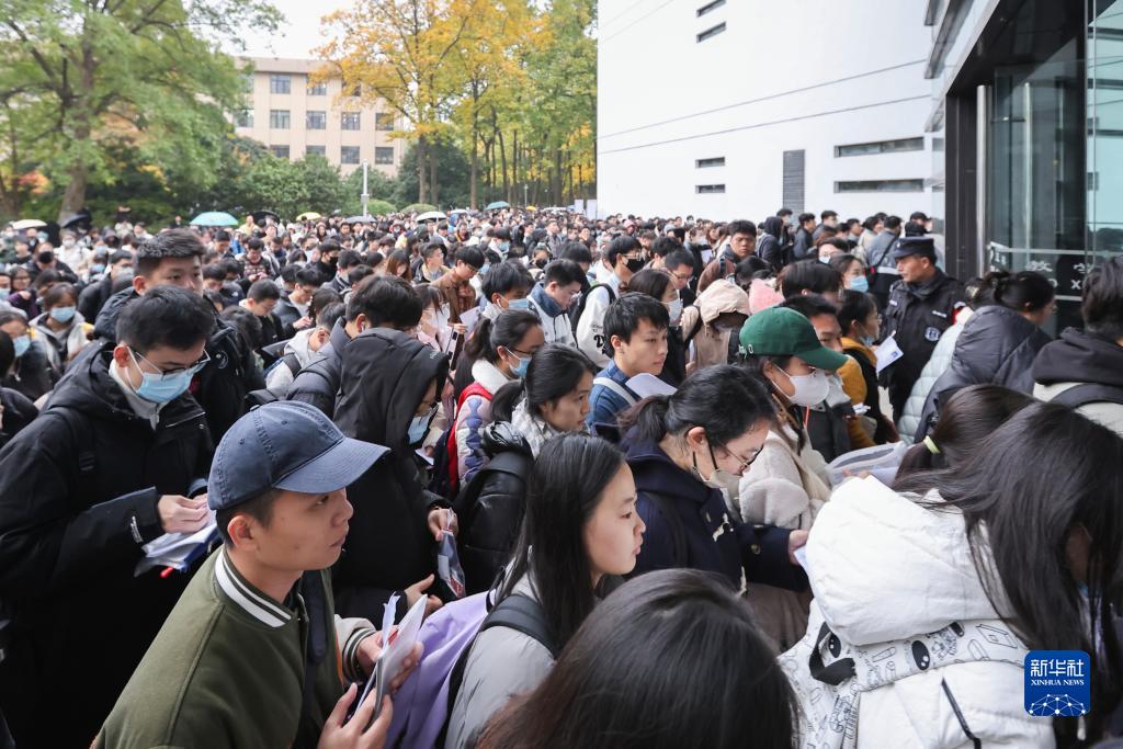 11月26日,在南京林业大学考点,考生进场准备参加考试。新华社发(苏阳 摄)