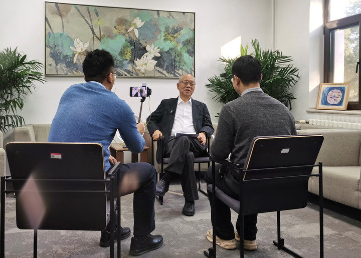 2023年12月28日,国际著名数学家丘成桐在清华大学静斋接受记者专访。新华社发(清华大学供图)