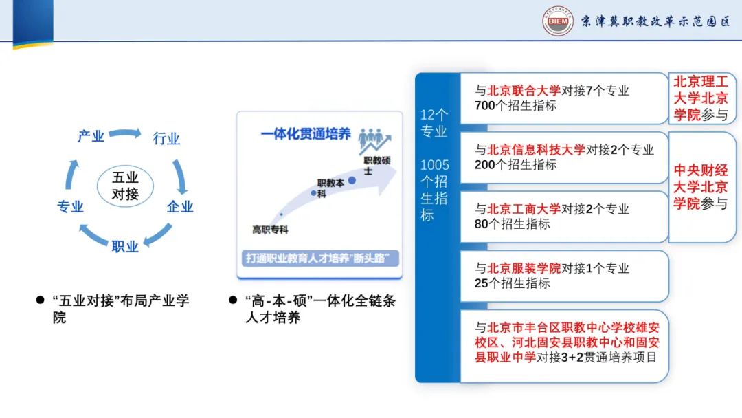 下一步,京津冀三省市将在更大范围内优化教育资源配置,深入推进职普融通、产教融合、科教融汇,打造首善标准、国内领先、世界一流的职业教育改革先行区、示范区,为京津冀协同发展提供教育、科技、人才支撑。