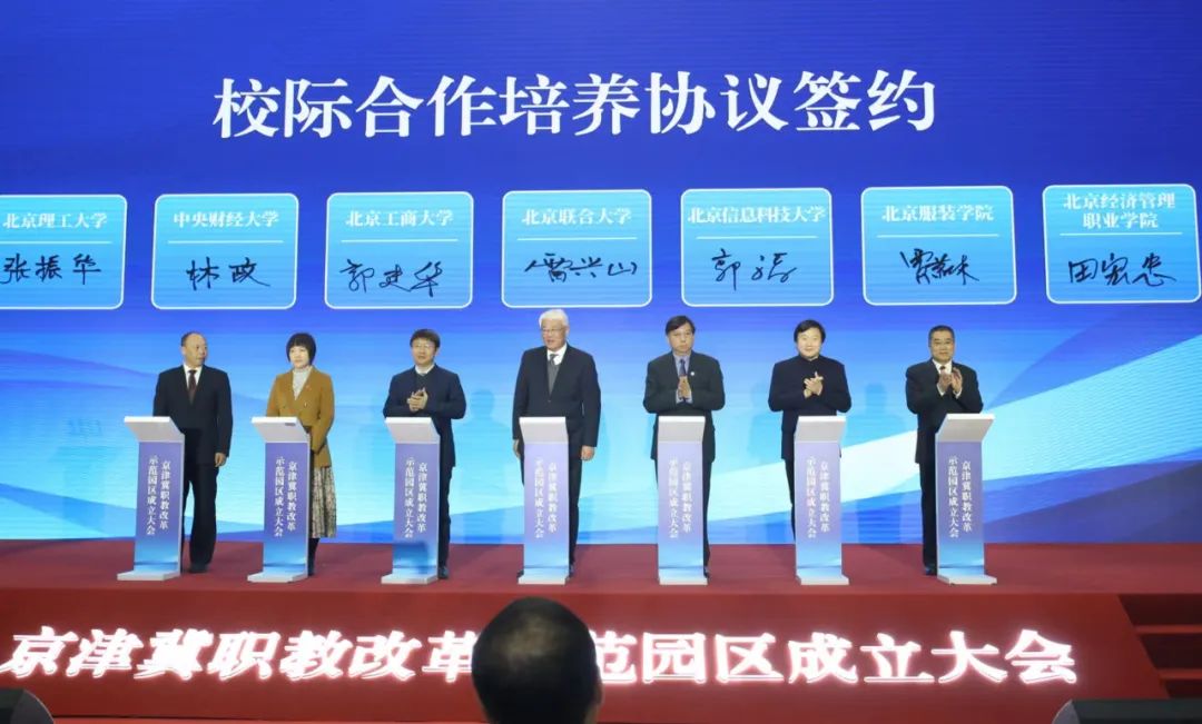 园区成立大会上,京津冀三地举行了战略合作备忘录签约、校际合作培养签约、校企合作签约、校地合作签约、跨省市“3+2”联合培养签约等系列签约。依托园区建设的京津冀职业教育改革研究中心、园区产业学院、北京市新时代中高职思政课一体化建设工作中心也于当天正式揭牌。