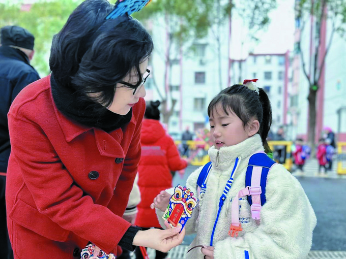 金龙散花区,祥龙送福启新程。属龙的老师们来到各班教室,赠福迎新,小龙人奶糖让大家的校园生活又甜又暖。