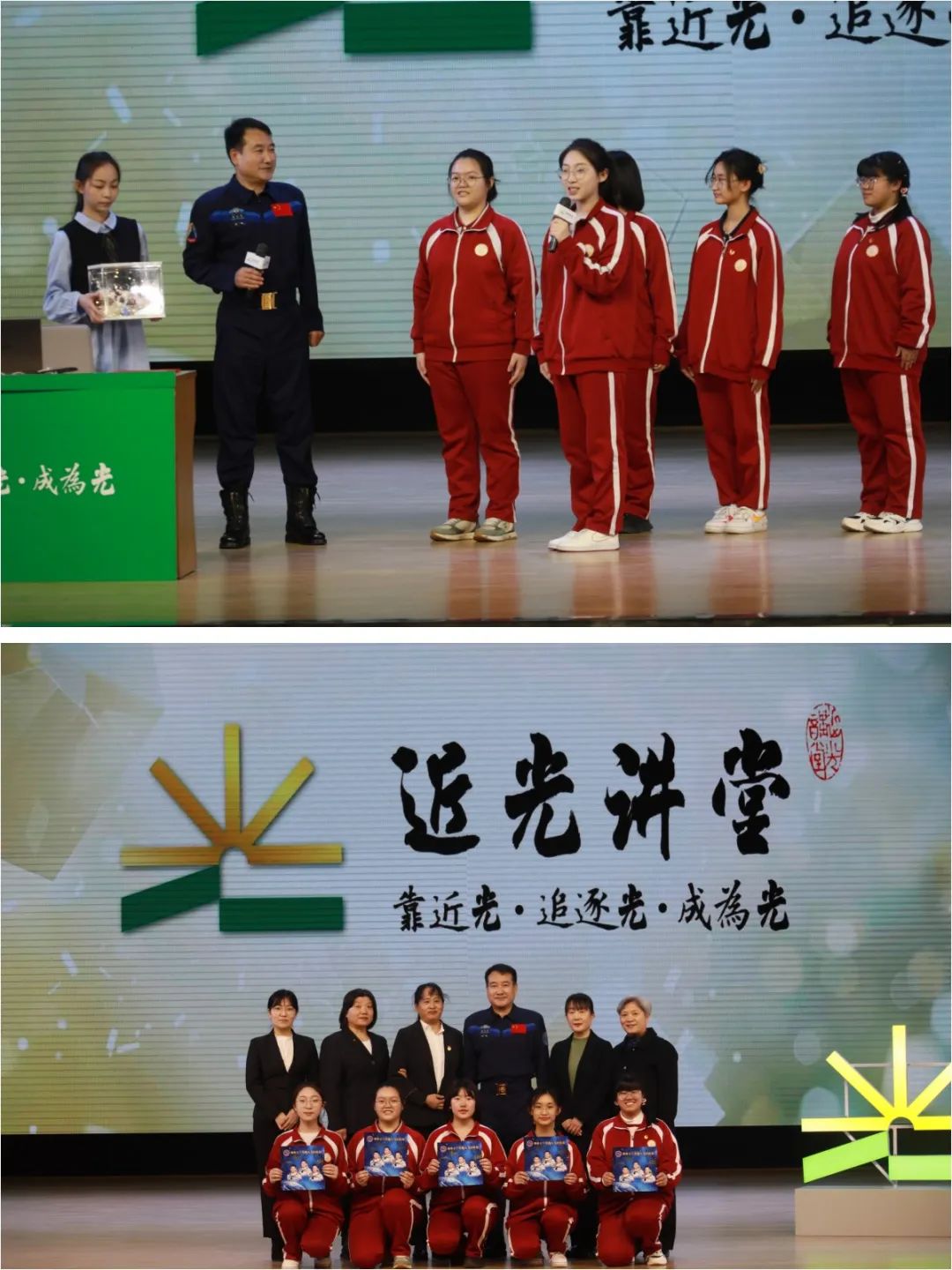 “‘近光讲堂’作为学校教育和文化建设的品牌,同样也是全区中学生的‘大思政课’。”北京市平谷区委教育工委副书记、区教委主任陈运健表示,“我们通过邀请各领域的知名人士走进讲堂,为广大师生家长分享他们的智慧,帮助学生对社会、对人生有一个更加直接地了解,带领学生们发现世界的万千可能,进而将自我价值实现与国家发展、民族命运紧密联系起来。‘靠近光、追逐光、成为光’是‘近光讲堂’的标语和核心理念。”