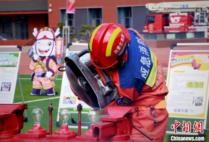 图为消防员展示切割精度。 郑佳琦 摄