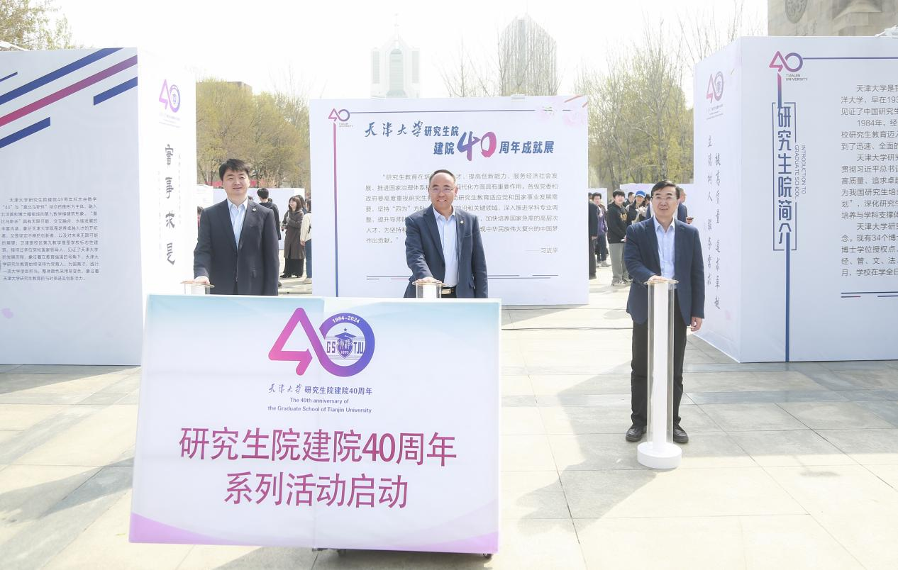 4月5日是2024“天大·海棠季”校园开放日,天津大学研究生院建院40周年成就展暨院庆系列活动启动仪式在卫津路校区北洋广场举办。天津大学党委常委、常务副校长胡文平,天津大学党委常委、副校长巩金龙,天津大学党委常委、宣传部部长杨欢,研究生院班子及工作人员,各学院(部)代表参加启动仪式。仪式由天津大学研究生院常务副院长李斌主持。