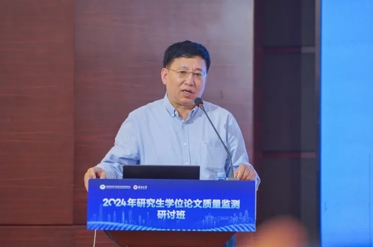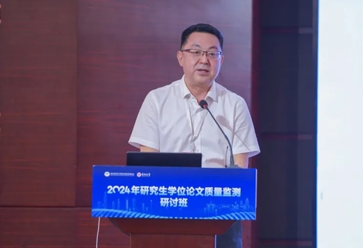 教育部学位中心论文质量监测处处长李恒金从语义大模型遴选算法提升、学位论文年度统计报告、拔尖创新后备人才识别等方面介绍了学位论文质量监测服务的新举措,从答辩前评审结果分析、评阅书分类评价、论文评审常见问题和专家典型评审意见示例等方面分析了2023年博士硕士学位论文质量,最后介绍了2024年论文质量监测重点工作。