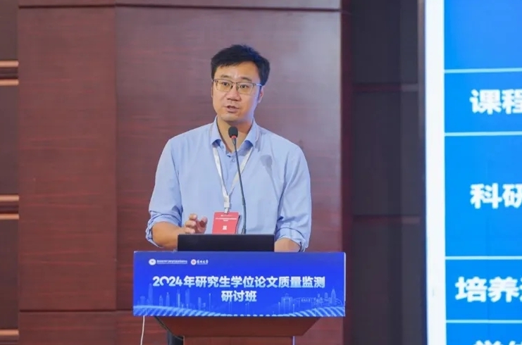 教育部教育督导局评估监测处处长高磊作“深化学位论文抽检改革,助力博士研究生教育高质量发展”主题报告。他介绍了2024年高等教育评估的重点任务,研制综合评估、专业认证方案,做好常态化质量监测;强调要改进专业学位博士论文抽检指标体系,启动八年制医学教育论文抽检改革试点,探索“白名单”制度,推动学位授予单位落实好第一主体责任,加强内部质量保障体系建设。