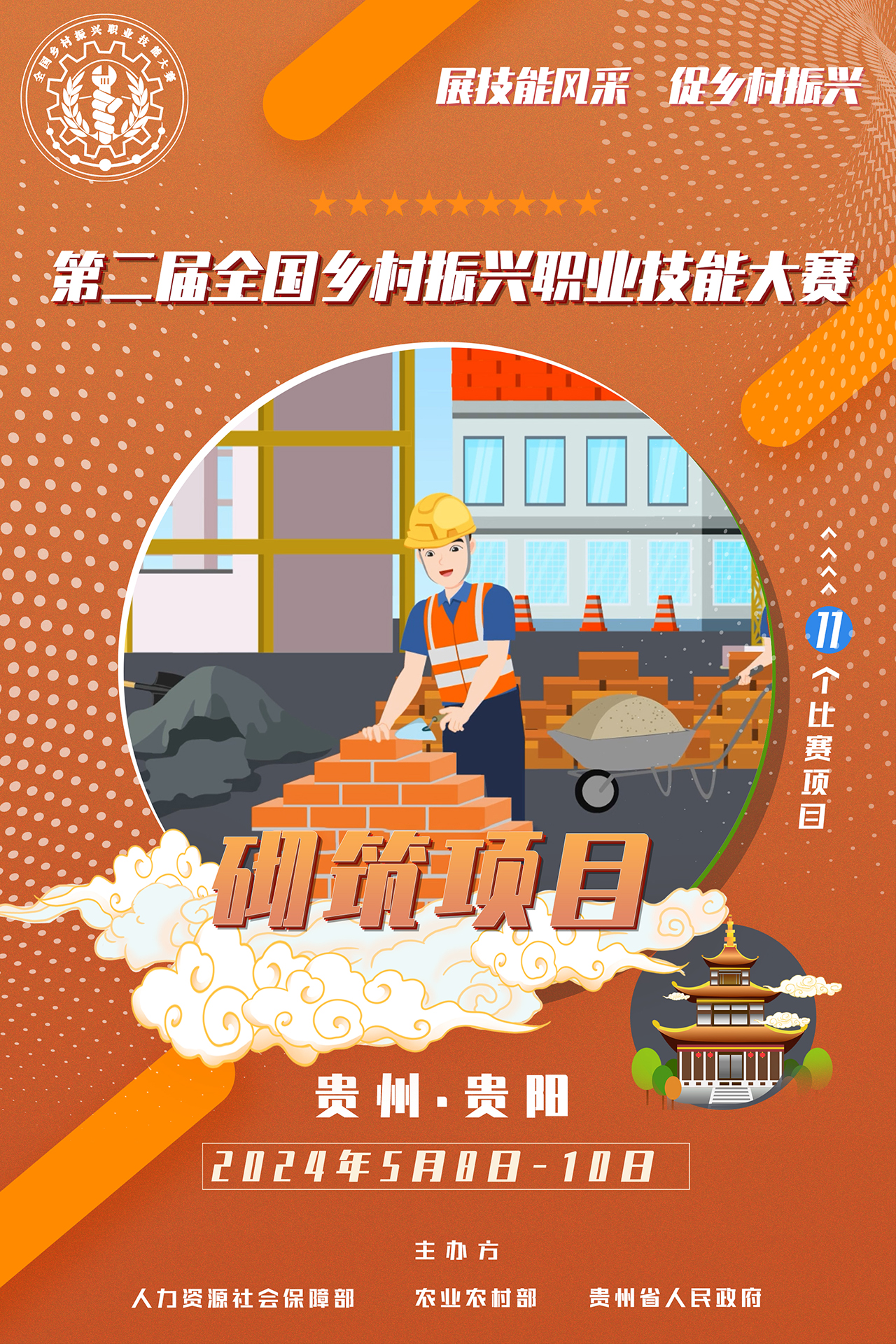海报|第二届全国乡村振兴职业技能大赛赛项-砌筑