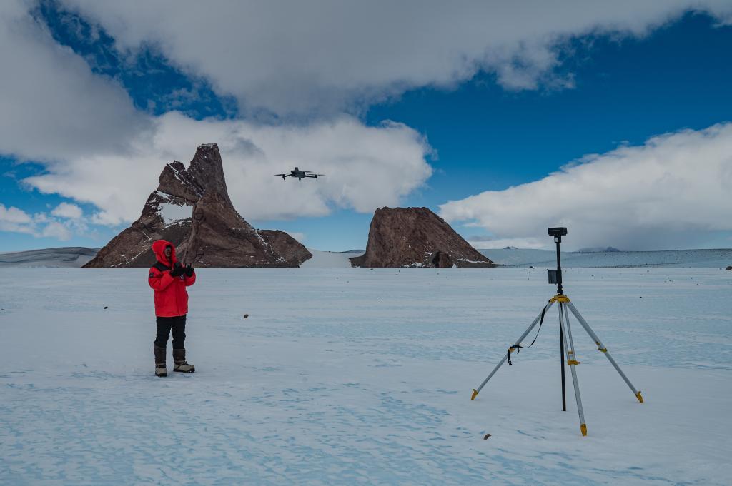 褚馨德在格罗夫山执行无人机航测任务。(受访者供图)