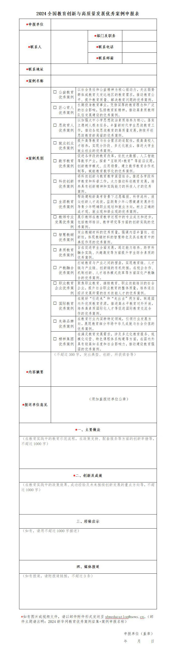 附件2:2024全国教育创新与高质量发展优秀案例申报表(点击可下载)