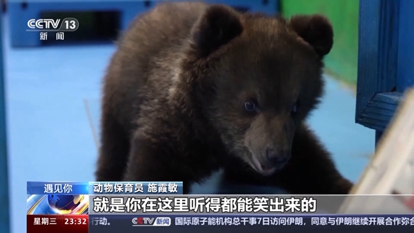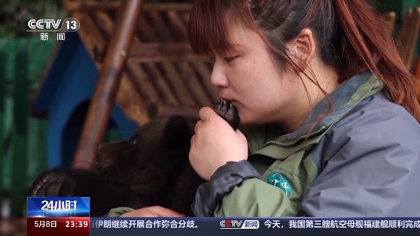 动物保育员 施霞敏:我们主要饲养那些妈妈不带的,半路上受伤的,还有一些生病的,会送到我们这边来,通过治疗照顾,好了之后再送回去。像这只也是的,没有我们带就没有这么可爱的小熊了。