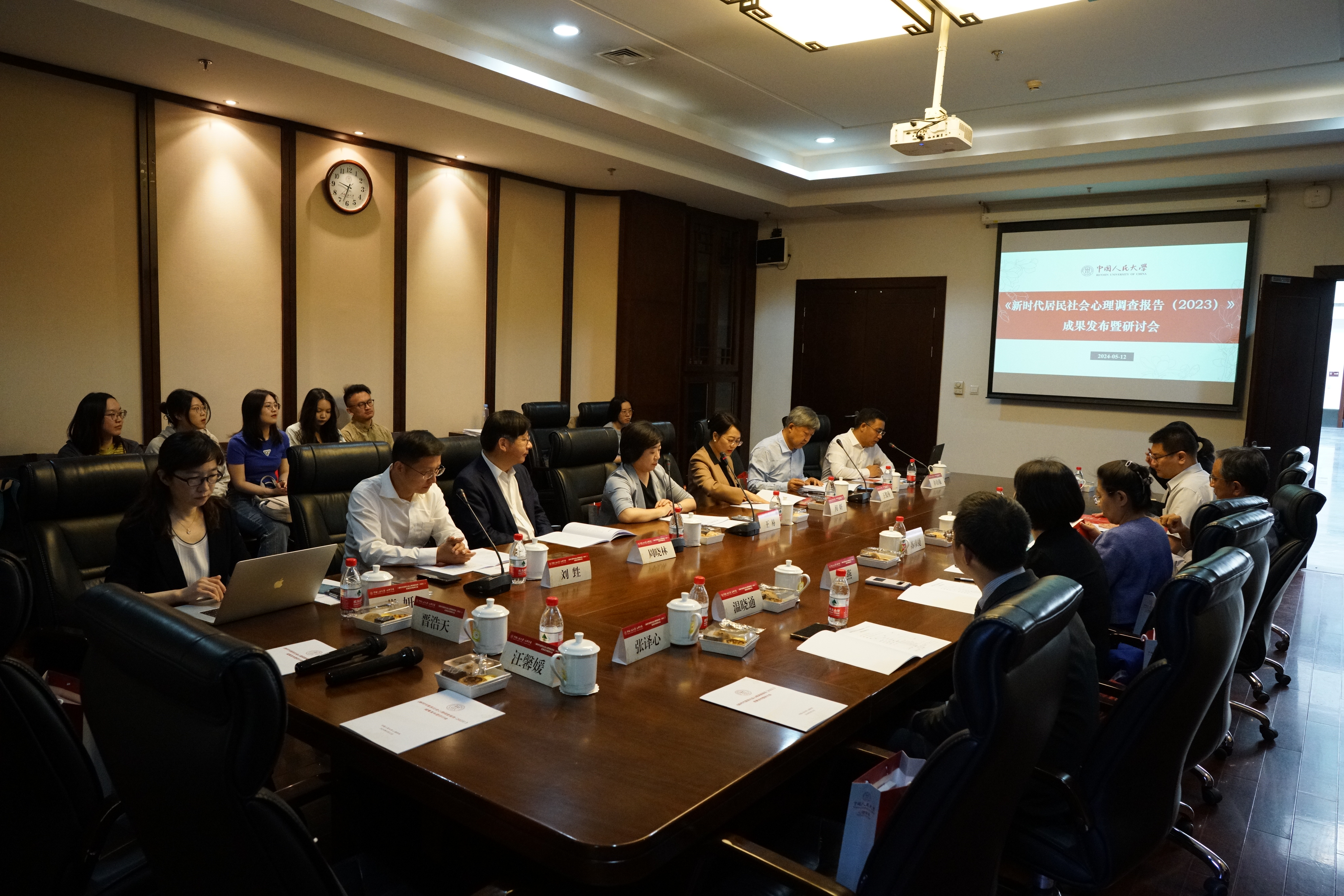 在专家研讨环节上,教育部高等学校心理学教学指导委员会主任、华东师范大学周晓林教授首先发言,他认为此次调研充分响应国家号召,从五个方面宏观地把握居民心理,这是构建自主知识体系和学科建设的重要举措,并建议今后持续开展调研以探究居民的社会心理机制、开发原创调研工具。中国心理学会理事长、北京大学苏彦捷教授认为此次调研很好地发挥了人民大学在社会心理学领域的研究优势,提出了原创的理论框架,建议今后不断优化研究方案,每年开展调研,也可以对社会热点问题开展专题调研。中国社会心理学会原会长、北京师范大学许燕教授认为,调研成果诠释了人民大学心理学系“迈向人民的心理学”的学科定位,有效反映了人民群众的社会心理状况,可以为政府决策提供参考依据,建议未来研究适当关注网络社会心态等议题。中国社会心理学会前任会长、中国科学院心理研究所张建新研究员指出,这项调研活动不仅产出了一项有特色的学术成果,也给担任调查员的学生提供了关注社会现实的机会,对锻炼和培养学生的实践能力非常有意义,同时期望青年学者抱有实事求是的态度和问题意识,更多为国家发展贡献心理学的智慧。中国社会心理学会副会长、中国社科院社会学研究所王俊秀研究员认为,人民大学心理学系有组织地开展社会心理调研工作,发扬了学校在社会心理学方面的传统,调研框架能够把学科视角和社会现实视角很好地结合起来,非常具有特色,并建议今后可以适当关注特定群体或特定专题的调研。中国人民大学发展规划处副处长李晶指出,这次的社会心理调查项目可以作为人文社会科学领域开展有组织科研的样板,它凝练了科研队伍,产出了有显示度的标志性成果,而且通过调研锻炼了学生科研能力,具有实践育人价值,今后将继续全力支持调研项目,助力心理系办出特色、办出水平。