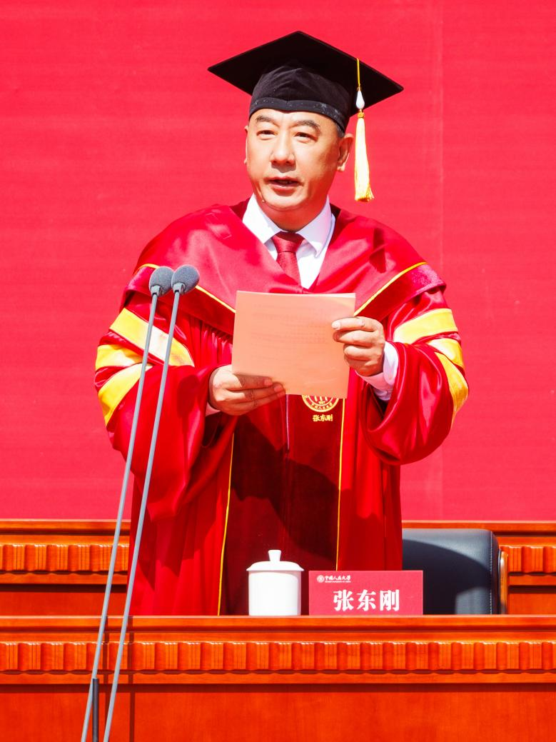 张东刚寄语全体毕业生,希望大家坚定不移听党话、跟党走,坚持爱国、爱党、爱人民,把个人理想追求融入国家和民族事业中;做到追求进步、锐意创新,立足岗位、苦练本领,在创新创业中展示才华、服务社会,努力成为行业骨干、青年先锋;做到艰苦奋斗、爱国奉献,带头站稳人民立场,脚踏实地、求真务实,勇做有理想、敢担当、能吃苦、肯奋斗的新时代好青年。站在新的起点上,愿同学们在强国建设、民族复兴的时代潮流中奋勇争先,展现青春作为、彰显青春风采、贡献青春力量,奋力书写为中国式现代化挺膺担当的人大学子新篇章。