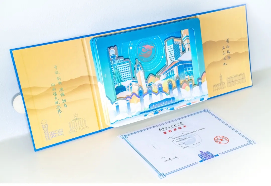 齐齐以飞行器徽章的形式出现在了新生的录取通知书中