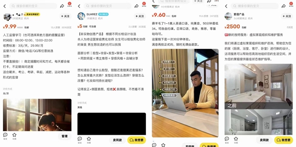 大赛期间,学生们挂出了监督学习、口语练习、妆造设计等丰富的特色商品。网络截图