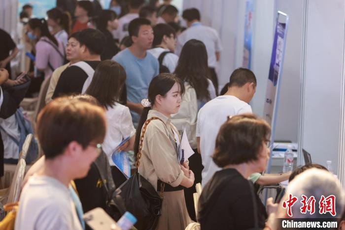 7月5日,求职者在招聘会现场寻找适合的岗位。当日,“就业领航 共筑未来——2024年暑期北京地区毕业生就业服务月活动”正式启动,并在北京大红门国际会展中心举办首场线下专场招聘会。中新社记者 贾天勇 摄