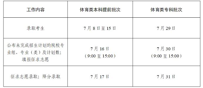 具体投档录取安排为:7月8日~10日本科提前批,7月8日~12日艺术类本科提前批,7月10日体育类本科。