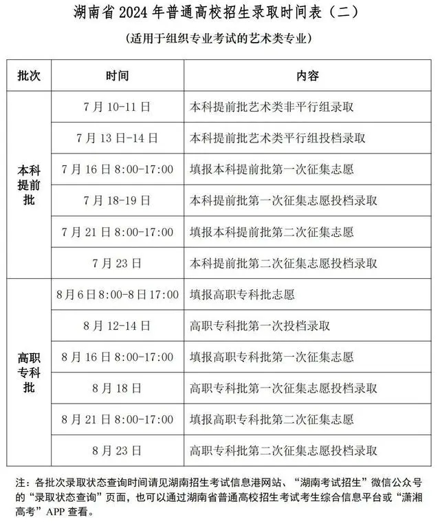 本科提前批次:7月8日至17日录取,其中,艺术类分为2小批;