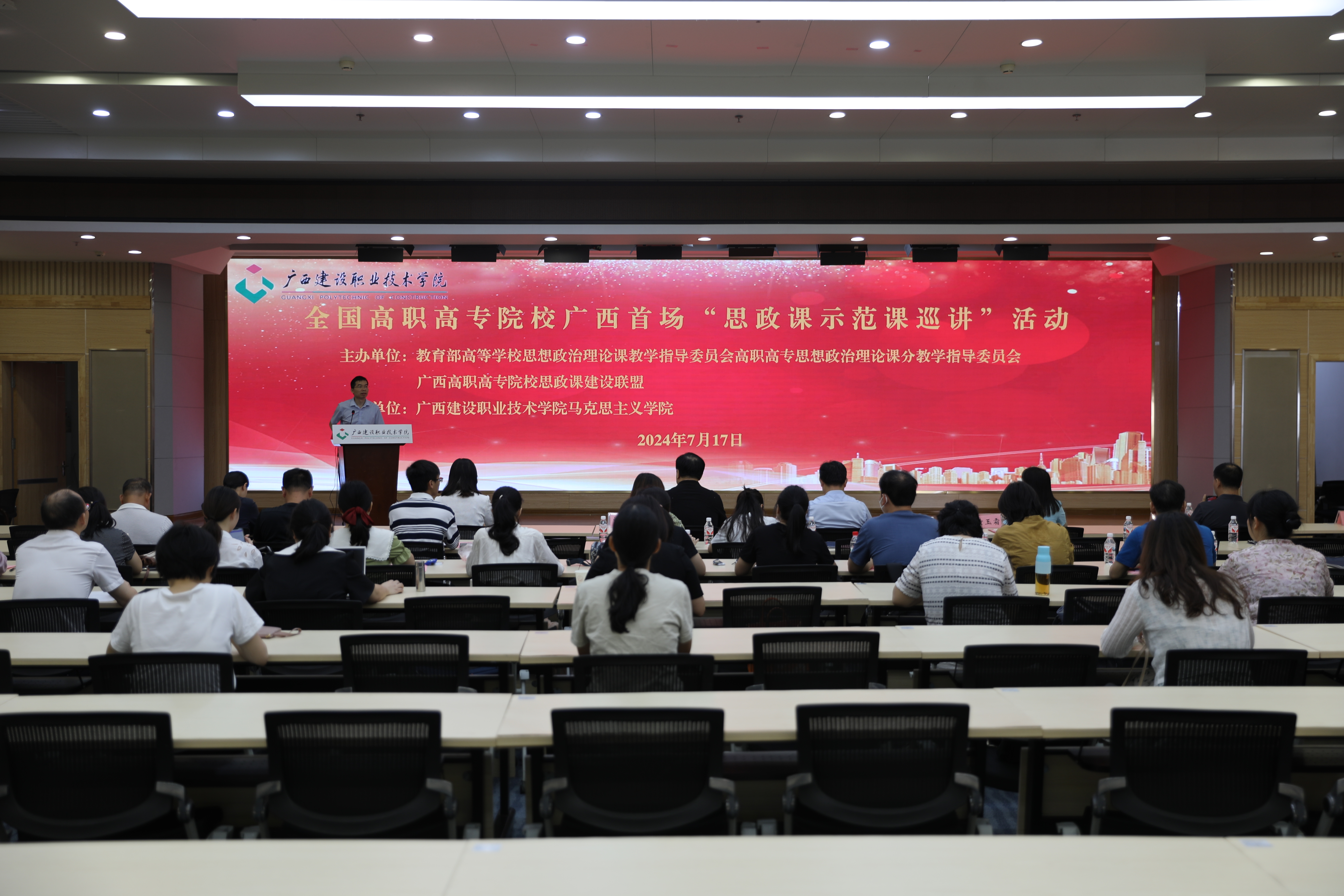 近日,2024年全国高职高专院校“思政课示范课巡讲”活动在广西建设职业技术学院开讲。活动由教育部高等学校思想政治理论课教学指导委员会高职高专思想政治理论课分教学指导委员会、广西高职高专院校思政课建设联盟主办,广西建设职业技术学院马克思主义学院承办。