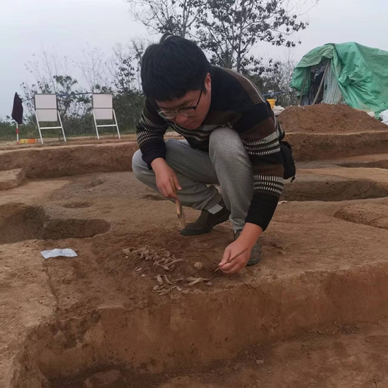2021年4月,袁博跟随硕士研究生导师在河南荥阳做田野考古,这是袁博学考古专业以来第一次正儿八经下田野。他挖到了一根人骨,并由此发掘出一座普通人的墓葬,哪怕研究价值不大,也没有陪葬品,但对袁博意义非凡,晚上收工时他还在担心“会不会有人来偷我的骨头”。