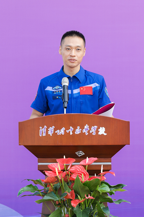 典礼上,“英雄航天员”江新林给同学们带来了新学期的寄语,分享了自己的经历和感悟,勉励同学们要艰苦奋斗、努力学习、勇敢探索未知,努力追求卓越。希望清华永丰的学子们能够胸怀天下,仰望星空,脚踏实地。