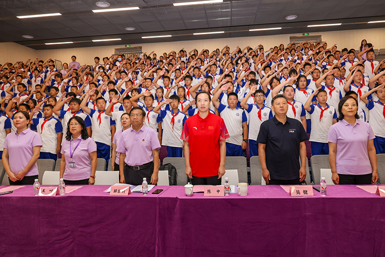 此次开学典礼邀请到了北京体育大学团委书记、两届奥运会跆拳道冠军、中国跆拳道协会副主席陈中参加。陈老师向同学们讲述了自己的奋斗历程,鼓励同学们树立远大理想,争做敢于拼搏、踏踏实实的追梦少年,努力成为自己人生的冠军。两位学生小记者向陈老师提出了同学们准备的问题。陈老师以亲切幽默的语言,逐一耐心解答,每一个回答都饱含着对体育事业的热爱与执着和对同学们的殷切期望。