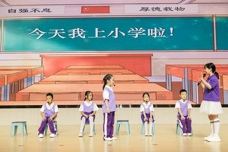 新学期,新气象,新期望,新梦想。学生代表上台分享了同学们眼中的“奥运精神”关键词,立志在学习生活中践行“更快、更高、更强——更团结”的奥运精神。校领导和嘉宾为在上一学年获得个人“红领巾星章”的学生颁发星章。合唱团带来歌曲《生长吧》。一年级新生同学为大家带来了情景短剧《今天我上小学啦》。