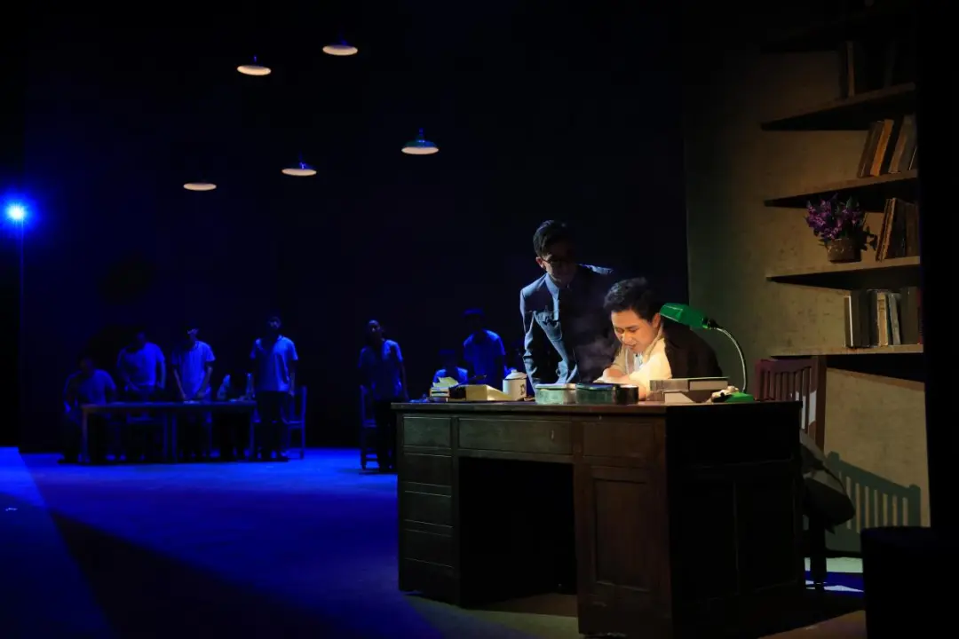 整场话剧表演与音乐、舞蹈、影视、朗诵等艺术形式深入融合,讴歌了邓稼先爱国报国的波澜一生,也细致描绘了主人公质朴大气的英雄形象、丰富而赤诚的内心世界和对家人、对挚友、对伙伴们的深情厚谊。