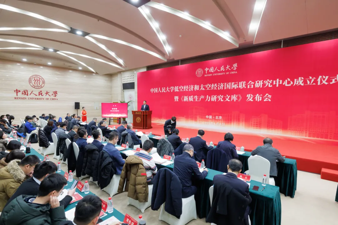 日前,中国人民大学低空经济和太空经济国际联合研究中心成立仪式暨《新质生产力研究文库》发布会举行。