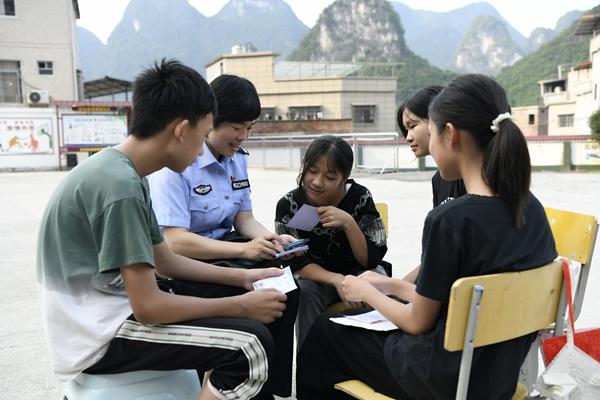 广西壮族自治区监狱管理局开展“百警进校园 千警结对留守儿童”活动,选派100名政治素质好、有爱心、责任心强的监狱系统警察担任法治副校长及校外辅导员,到学校开展普法教育。参与帮扶活动的警察有不少取得了心理咨询师证书,在与留守儿童交流时,他们凭借多年的专业训练,能够更加敏锐地观察到孩子们的心理动态,叩开孩子们的心门,为青少年健康成长保驾护航。