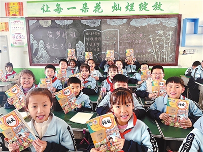 河北省曲周县第二实验小学学生领到新学期的教材。曲周县教育体育局 供图
