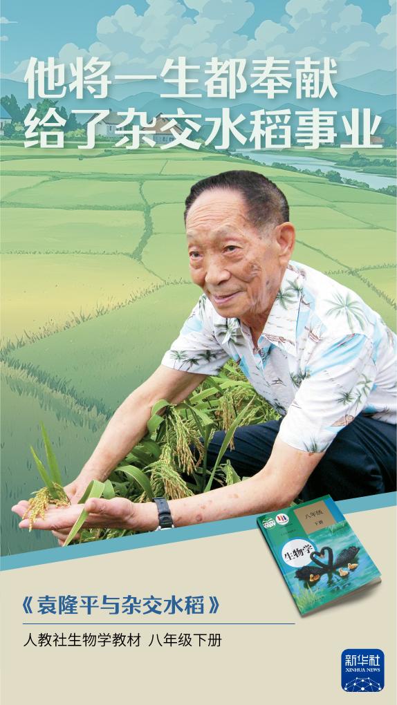 “杂交水稻之父”袁隆平院士离开我们已经四年了。“我毕生的追求就是让所有人远离饥饿”“成功易使人陶醉,莫把百尺当尽头”“他将一生都奉献给了杂交水稻事业”……课本里关于袁隆平的这些话,让我们一遍遍感念他平凡而伟大的人格。今天,让我们跟着课本,一起缅怀袁老!