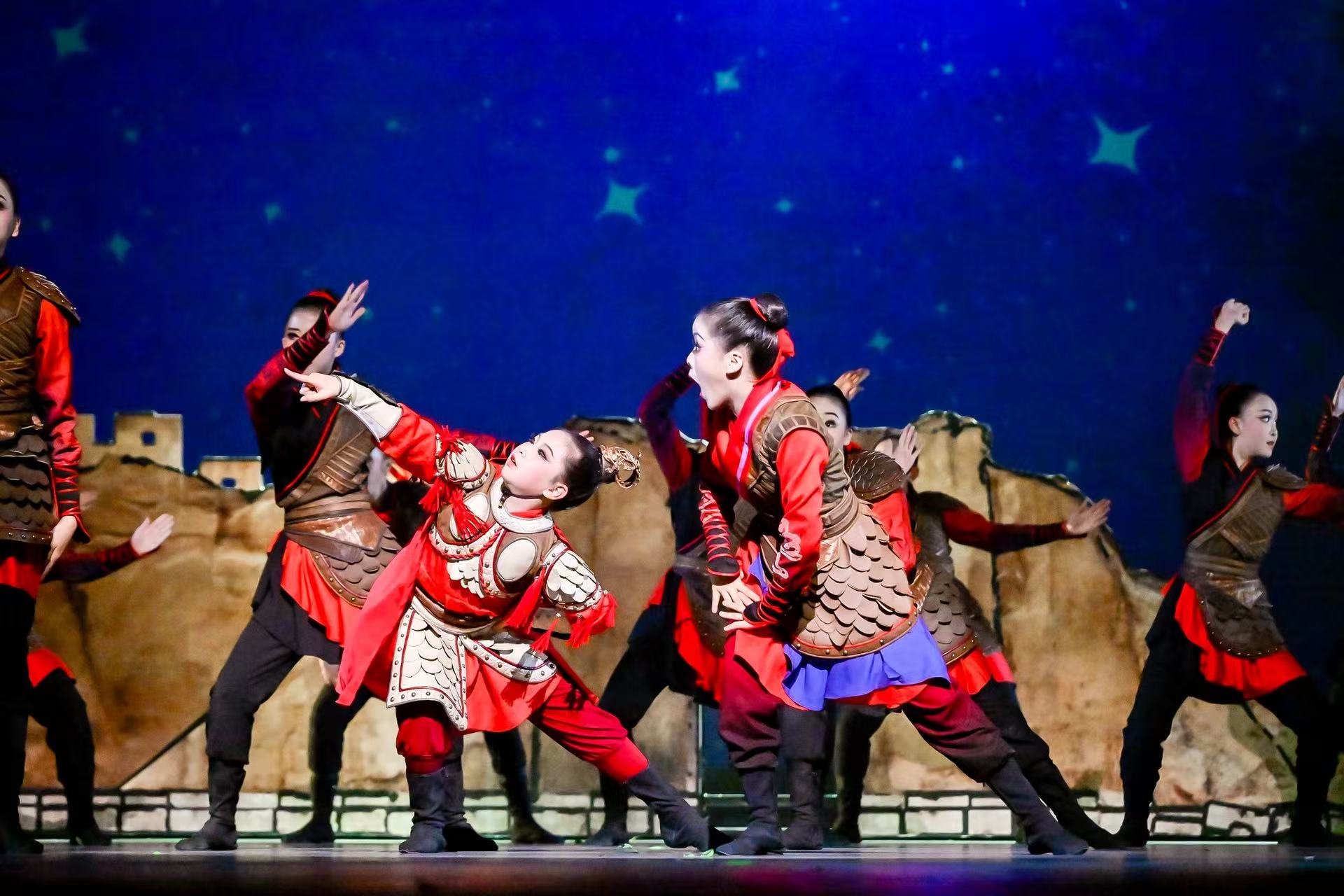 庆典展示的核心亮点是原创舞剧《花木兰》的专场演出,以艺术演绎的形式升华育人内涵。剧中学生“牟兰兰”穿越千年化身木兰,历经军营淬炼、战场救险,终完成精神蜕变。该剧前后经过七年的磨砺、创新,成为了生动的思政课堂。