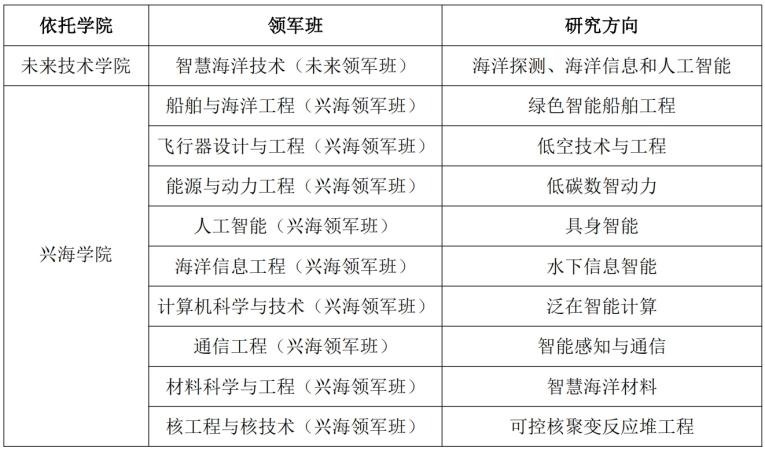 第一类特殊班型是10个超常规培养的领军班,包括1个依托未来技术学院开设的未来领军班,9个依托兴海学院开设的兴海领军班。