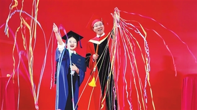 中国农业大学毕业典礼上,校长孙其信与毕业生互动合影。学校供图