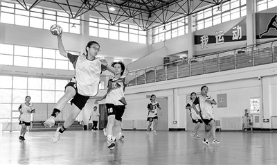 ②珲春市第一小学手球队的队员在进行日常训练。王浩 摄