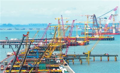 厦金大桥(厦门段)海上桥梁大规模装配化施工现场。新华社记者 魏培全摄