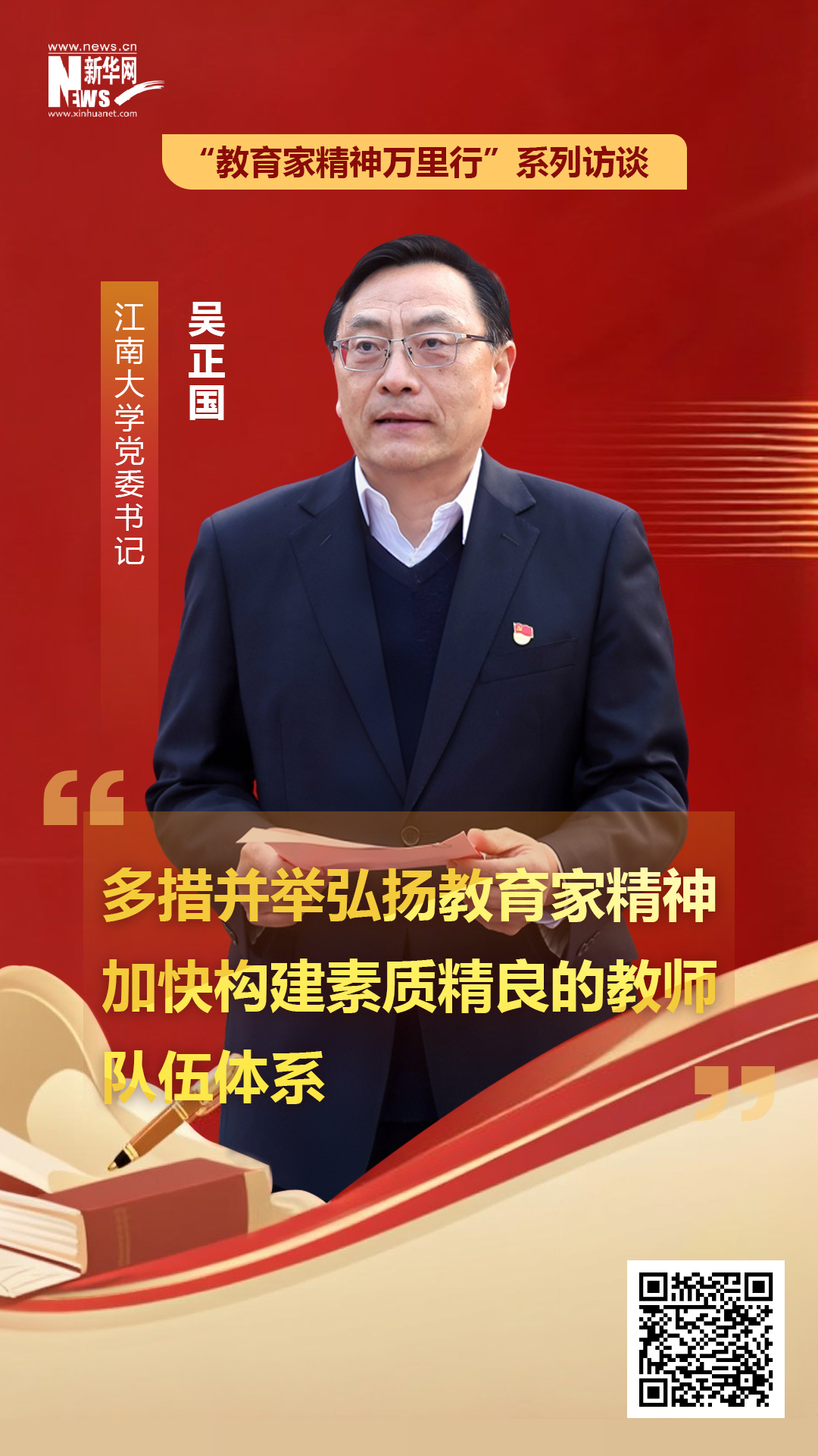 近日,江南大学党委书记吴正国在接受新华网专访时,详细介绍了学校在弘扬教育家精神、深化教师评价改革及数字化赋能教师发展等方面的创新实践。他表示,江南大学始终坚持以教育家精神铸魂强师,致力于加快构建素质精良的教师队伍体系,不断营造优秀人才争相从教、优秀教师不断涌现的良好局面。