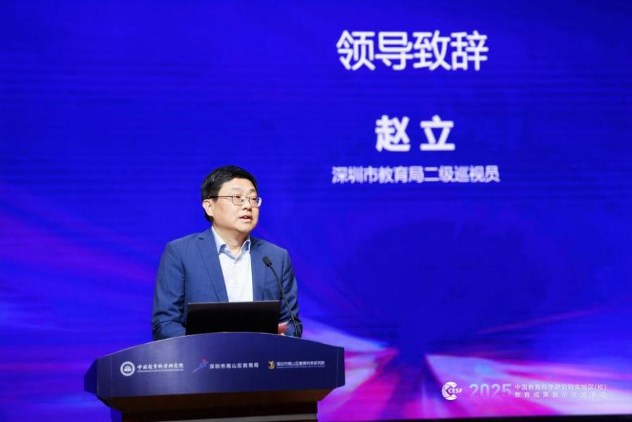 深圳市教育局二级巡视员赵立在致辞中表示,当前,人工智能正加速重塑教育生态。在中国教科院的长期指导下,南山实验区系统推进智慧课堂、数字教育新生态等探索,推动教育理念、教学方式与学校治理的全面转型。本次展示交流活动,不仅是一场面向未来的智慧分享,更体现了国家级教育智库在技术革新、治理创新和改革引领中的战略眼光与使命担当。