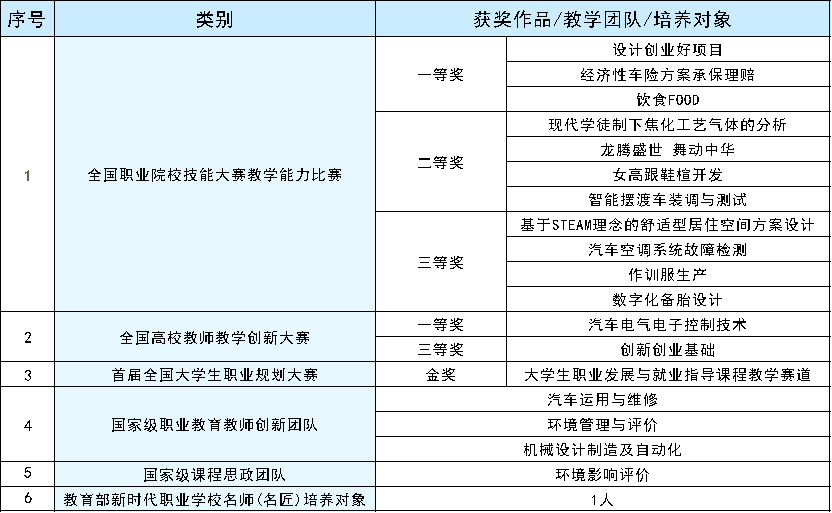 该体系实践6年来,取得了显著成效。学校教师人均参加12门培训课程,参与度达100%;获教师教学能力比赛国赛一等奖3项、二等奖4项、三等奖4项;获全国高校教师创新大赛国赛一等奖1项、三等奖1项。获全国大学生职业规划大赛全国总决赛大学生职业发展与就业指导课程教学赛道金奖1项;省级教学比赛获奖81项,获奖教师占专任教师的26%;入选国家级职业教育教师创新团队3个,省级教师创新团队4个,河北省高校黄大年式团队2个;国家级课程思政团队1个、教学名师8人;教育部新时代职业学校名师(名匠)培养对象1人。