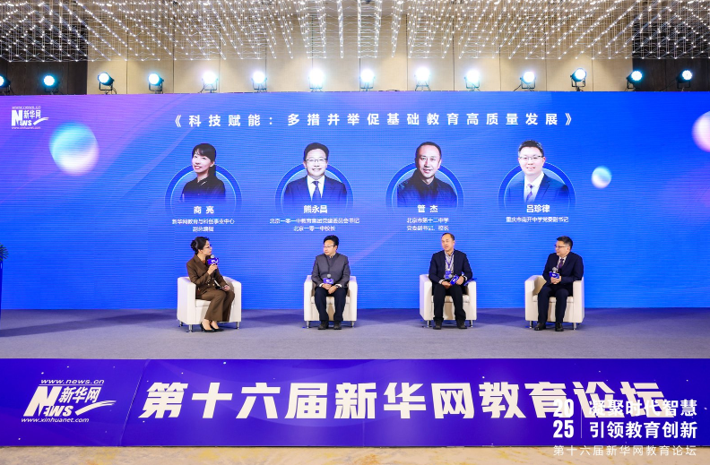 新华网北京12月15日电 11日下午,第十六届新华网教育论坛基础教育分论坛在京举办,第一阶段以“铸魂 奠基”为主题聚焦基础教育领域的创新发展。在圆桌对话环节,新华网教育与科创事业中心副总编辑商亮围绕“科技赋能:多措并举促基础教育高质量发展”主题,对话北京一零一中教育集团党建委员会书记、北京一零一中校长熊永昌,北京市第十二中学党委副书记、校长管杰,重庆市南开中学党委副书记吕珍律三位嘉宾。围绕教育共同体建设、AI赋能教学、科技人才培养及学校文化传承四大议题,结合各自学校的实践经验,分享了兼具理论深度与实践温度的教育思考。