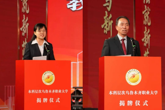 与会领导为“本科层次乌鲁木齐职业大学”揭牌,现场全体人员共同见证了这一历史性时刻。