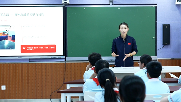 站上思政课堂的武杨也深有感触。她表示,自己不仅是在传授乒乓球技巧,更是在传递一种“向上生长”的力量。愿这颗小小的精神种子,在孩子们心中生根发芽,让他们未来面对人生选择时,多一份坚定与勇气。